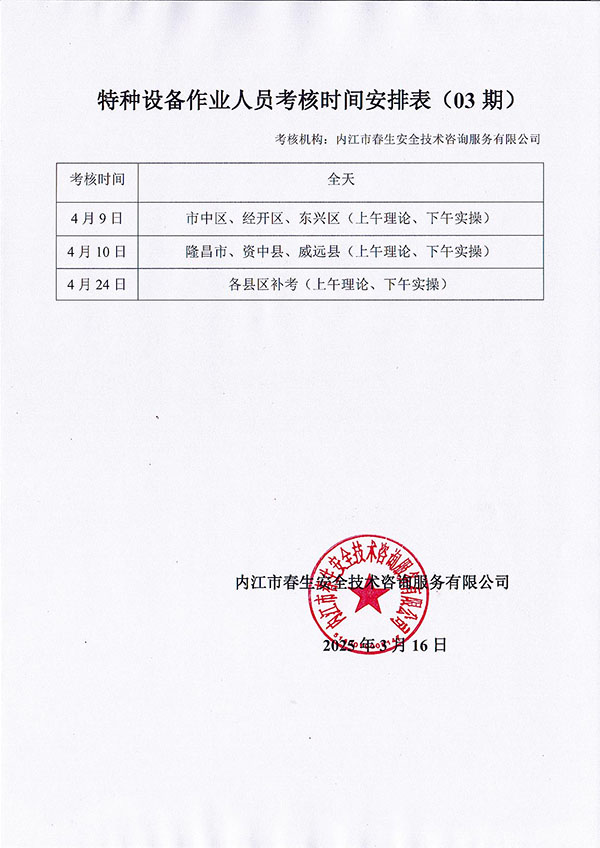 關(guān)于舉辦內江市 (2025)04期特種設備作業(yè)人員 考核班的通知