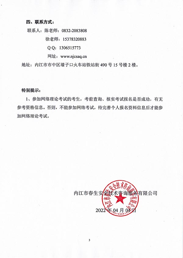 2022年春生公司04期特種設(shè)備作業(yè)人員考核時(shí)間安排