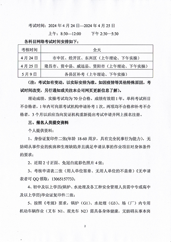 關于舉辦內江市、資陽市(2024)02期特種設備作業(yè)人員考核班的通