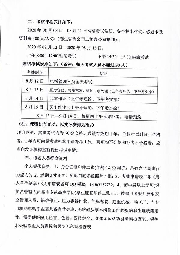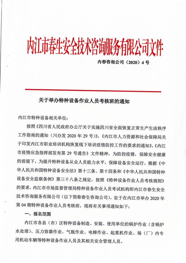 2020年春生公司05期特種設備作業(yè)人員考核班通知