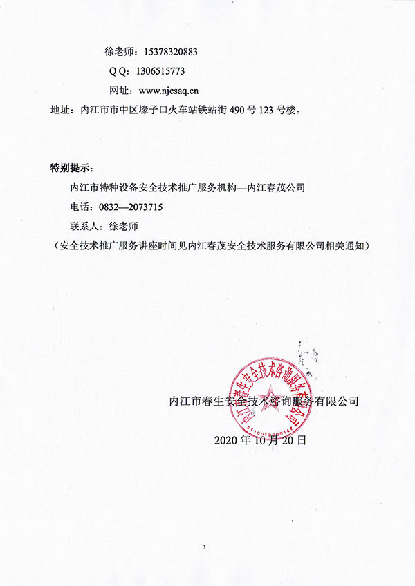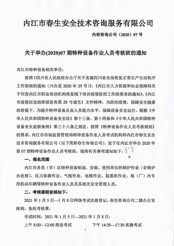 2020年春生公司06期特種設(shè)備作業(yè)人員考核班通知